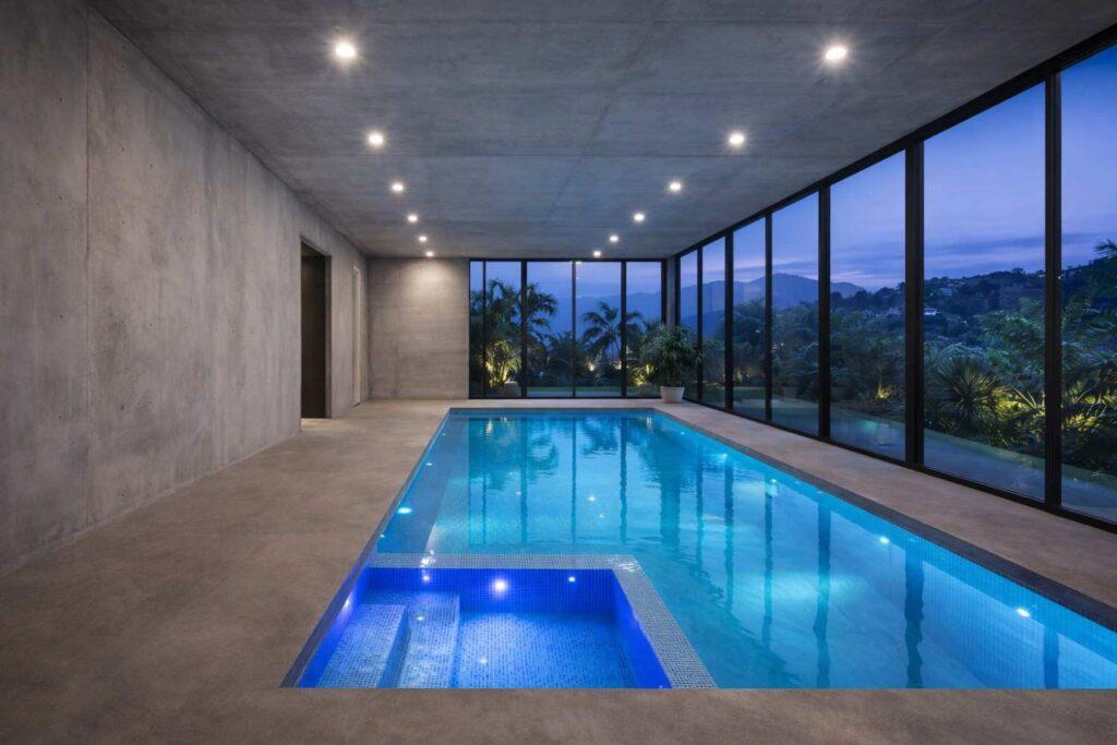 - Premium luxury indoor swimming pool environments with custom lighting and interior finishes